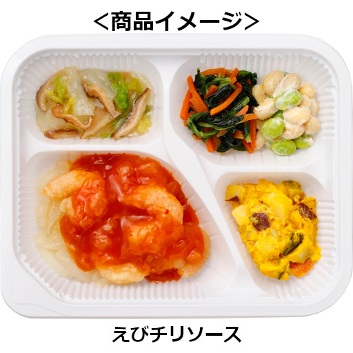 えびチリソース 1食205g当たり | 牛すき焼き風 1食210g当たり | 牛肉とナスの甘辛味噌仕立て 1食205g当たり | カツの卵とじ風 1食205g当たり | ||