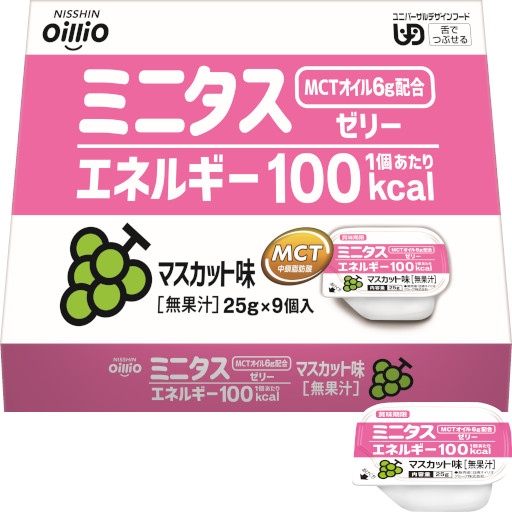 - 食用油脂(MCT(中鎖脂肪酸油)、パーム油)(国内製造)、砂糖、デキストリン、寒天/乳化剤、ゲル化剤(増粘多糖類)、香料、pH調整剤、着色料(紅花黄、クチナシ)